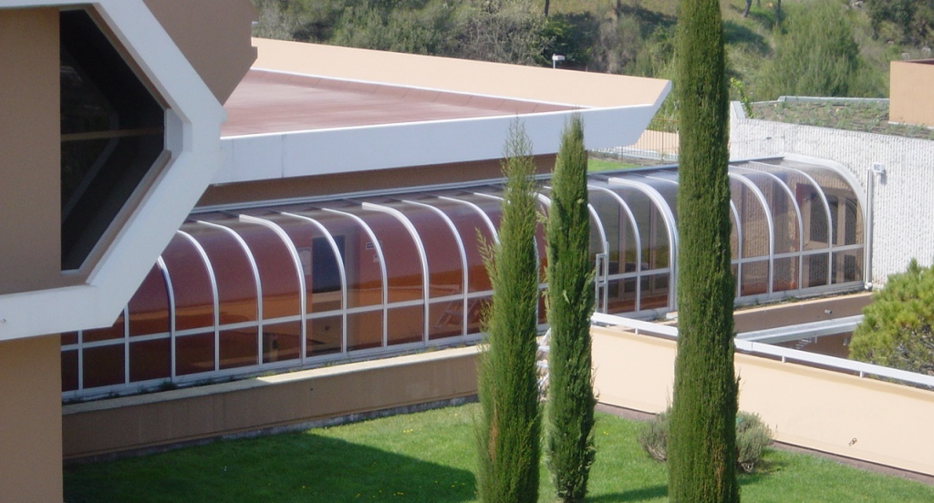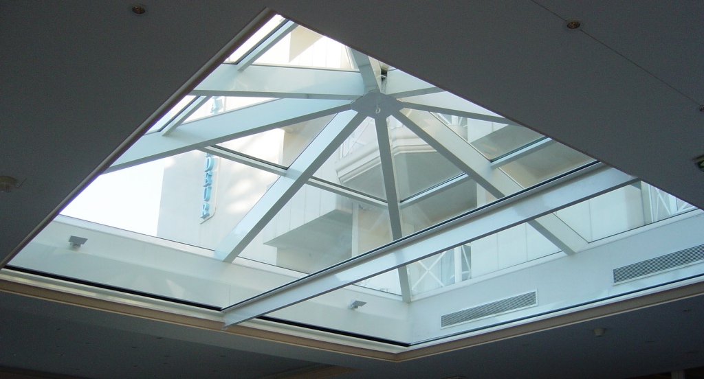 Les puits de lumière ont toujours été utilisés comme apport de luminosité dans les grands espaces où la lumière des ouvertures ne suffit pas à l’éclairage naturel comme ici dans le restaurant de ce grand palace à Juan les pins. L’ossature mixte acier et aluminium thermo laquée a permis la création de grandes portées et l’utilisation de volumes verriers importants aux caractéristiques thermiques et solaires permettant le confort de l’ensemble des convives. Combinés aux stores toile électriques escamotables, ces ouvrages ont permis l’exploitation de la grande salle de restaurant même au plus chaud de l’été où le soleil brille au zénith.